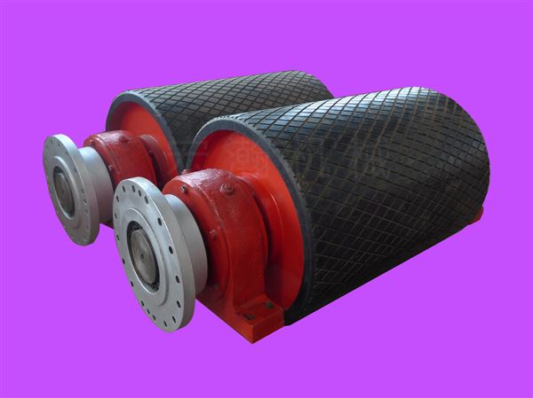 特點:傳動滾筒均在滾筒的表面冷粘貼10-15毫米厚的人字形或菱形可阻燃膠版,膠板和粘接膠的性能執(zhí)行MTB20-1999標準,滾筒采用了先進的加工技術(shù)使?jié)L筒兩端軸承的同心度≤0.05滾筒軸和筒體的連接?500毫米以下是鍵連接。?500毫米以上是漲套連接,漲套螺栓用定力矩扳手緊固,滾筒軸、滾筒體的焊縫均按國標GB10595-2009無損探傷,滾筒靜阻力系數(shù)小于0.02。